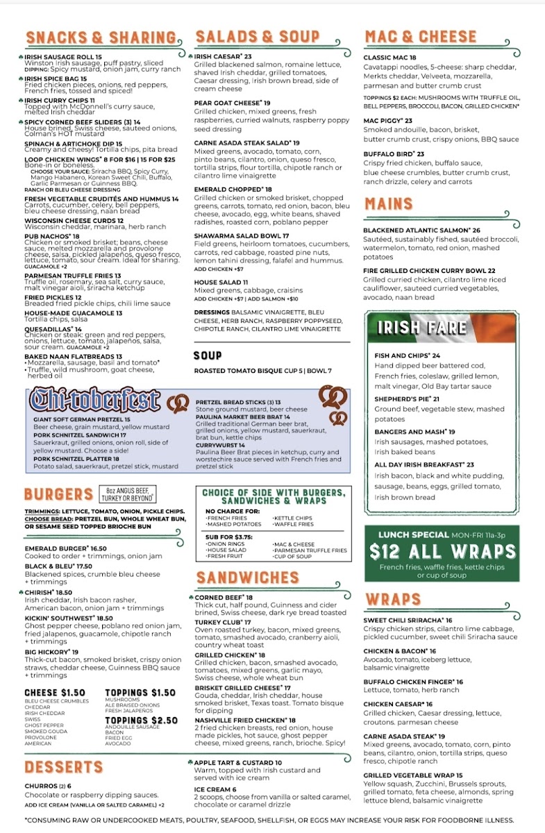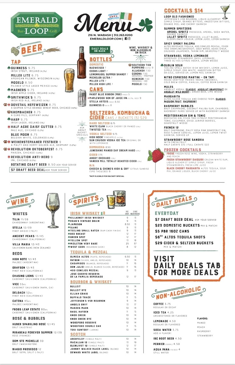 Whether you’re celebrating with friends, enjoying a casual meal with family, or simply taking a break from exploring Chicago, Emerald Loop Bar & Grill promises an experience filled with hearty meals, delightful drinks, and a welcoming atmosphere that keeps locals and visitors alike coming back for more. Don’t miss out on this gem in the Loop!