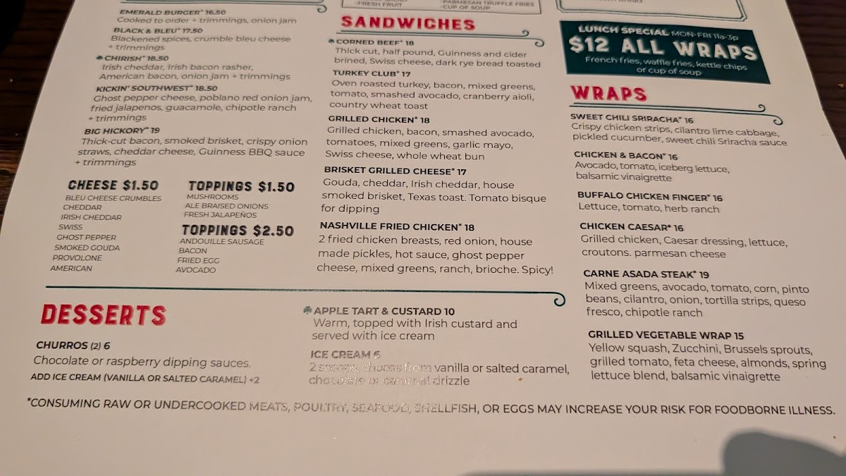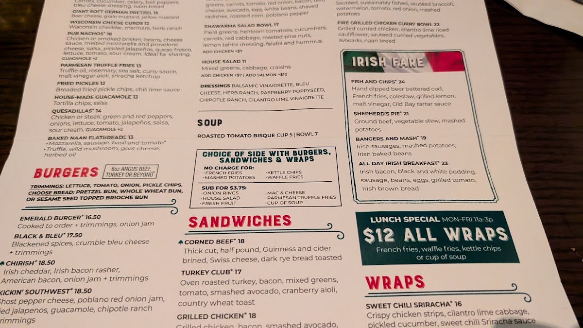 Drink enthusiasts will revel in the extensive selection of beers, including perfectly poured Guinness, ensuring that every sip complements your meal just right. The staff is noted for their friendly and attentive service, ready to help you navigate the drink menu or suggest a hearty dish to pair with your beverage.